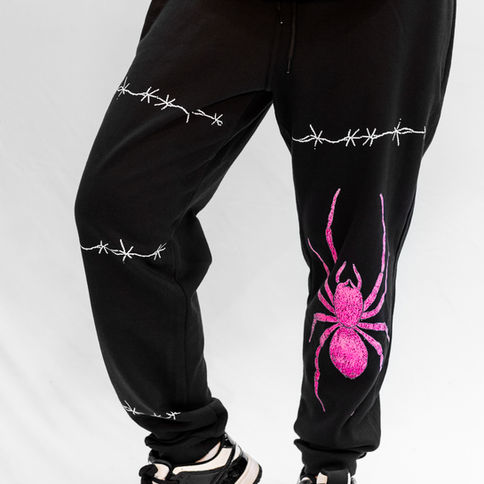 Calça jogger (com punho) produzida em moletom 50% algodão e 50% poliéster, oferecendo conforto, resistência e ótimo caimento. Contém dois bolsos laterais e um traseiro. Estampa em DTF de alta qualidade, que traz detalhes de aranhas e arames. Uma peça versátil para compor looks ou simplesmente ficar em casa.